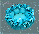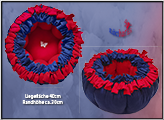 Gearbeitet aus Fleece, genäht und geknotet. Die Liegefläche beträgt