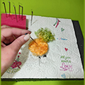 Jetzt binde ich mit einem Wollfaden oben den Puschel ab und nadele danach alles in die richtige Form.
